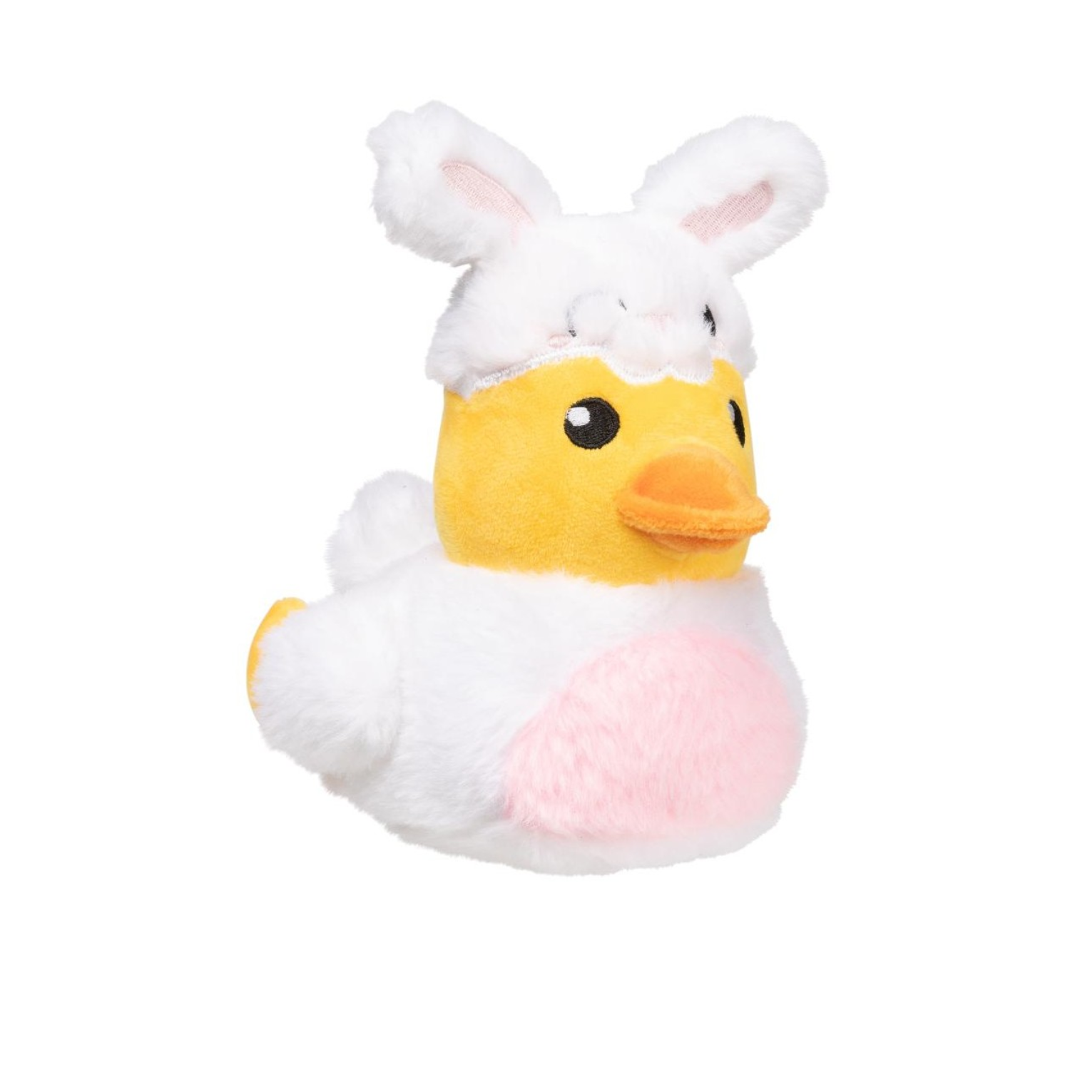 Dit schattige eendje is verkleed als echte paaskonijn! Voor urenlang speel en knuffelplezier