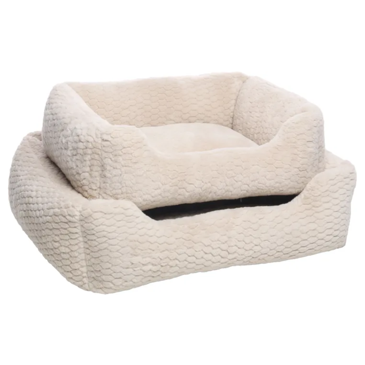 Geef je harige vriend een koninklijk plekje met deze superzachte beige mand Naya! Gemaakt van knuffelbaar pluche en gevuld met superzachte polyestervezels. De afneembare hoes is makkelijk te wassen op 30°C, en de antislipbodem houdt alles op z’n plek. Perfect voor honden die van luxe dutjes houden!