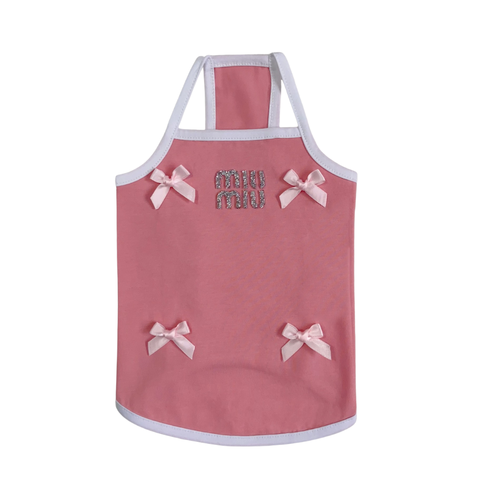 Schattig truitje voor de hond gemaakt van dun materiaal afgewerkt met leuke strikjes en glimmende letters