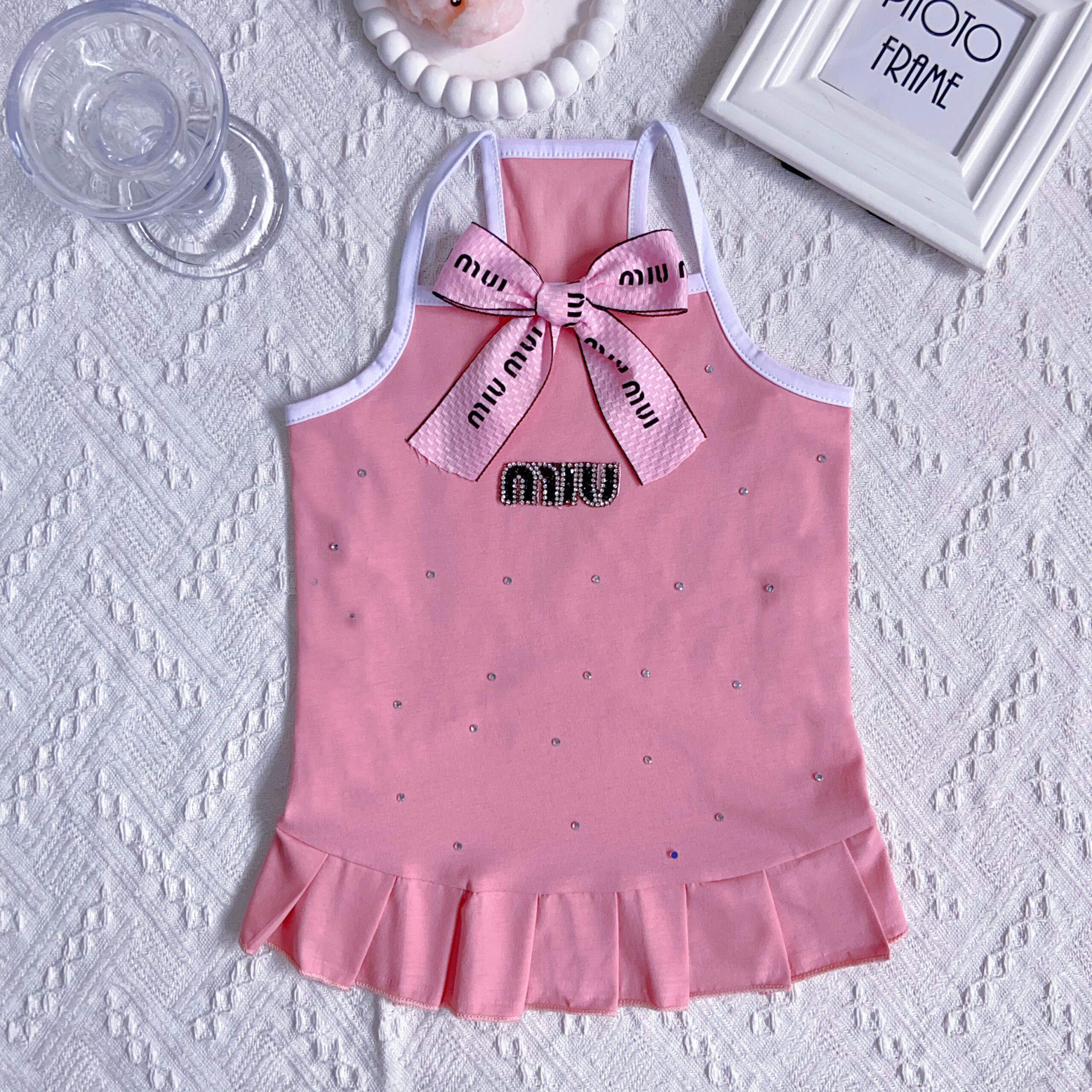 Schattig jurkje voor de hond gemaakt van dun materiaal afgewerkt met leuke strikjes
